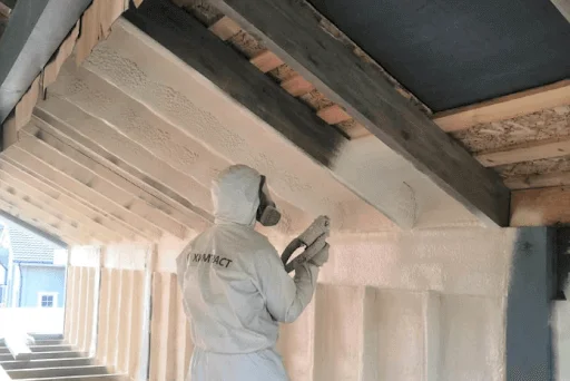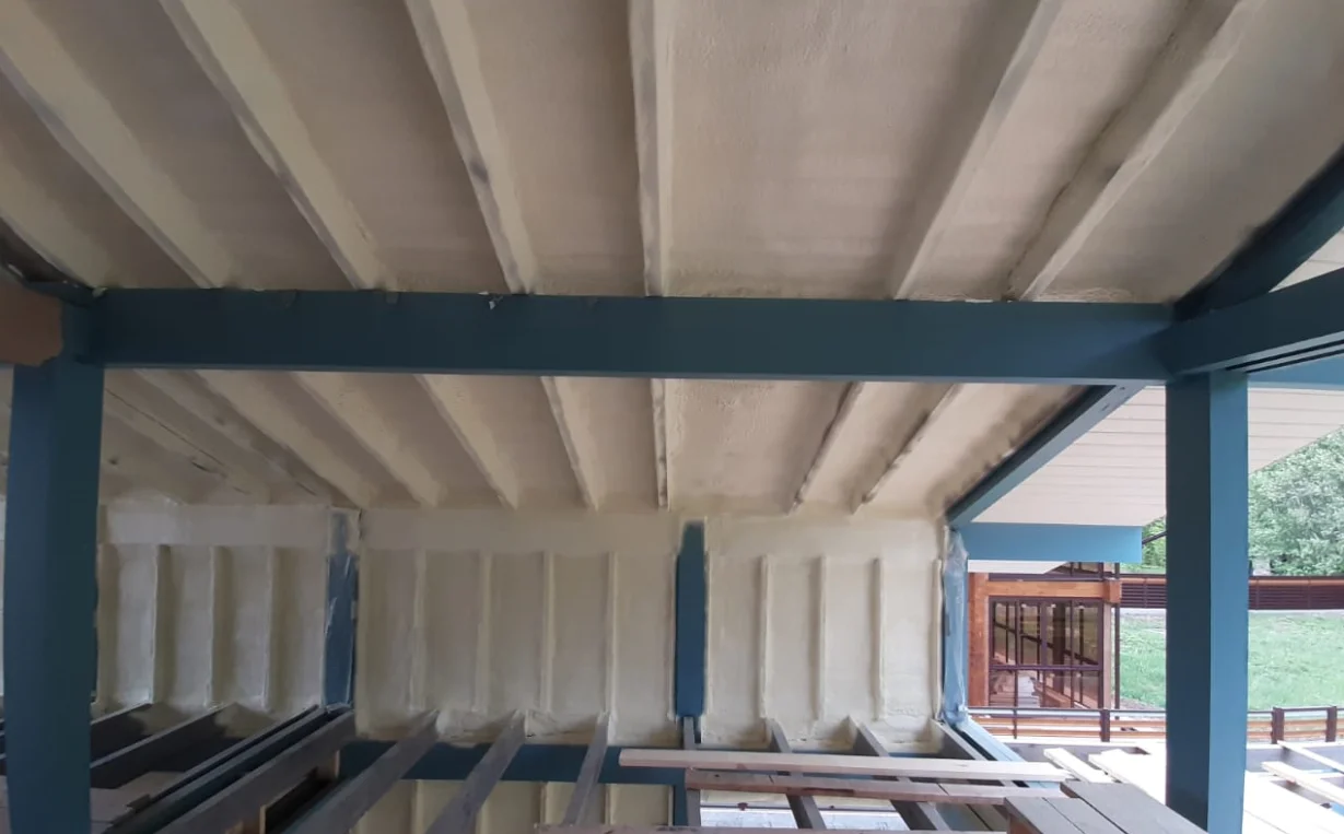 - Пенополиуретан. Смесь из изоционатного и полиольного компонентов. Для утепления применяют закрытоячеистый ППУ. Наносят методом напыления. За счет вспенивания заполняет все щели и зазоры, липнет к любой поверхности, не пропускает влагу.